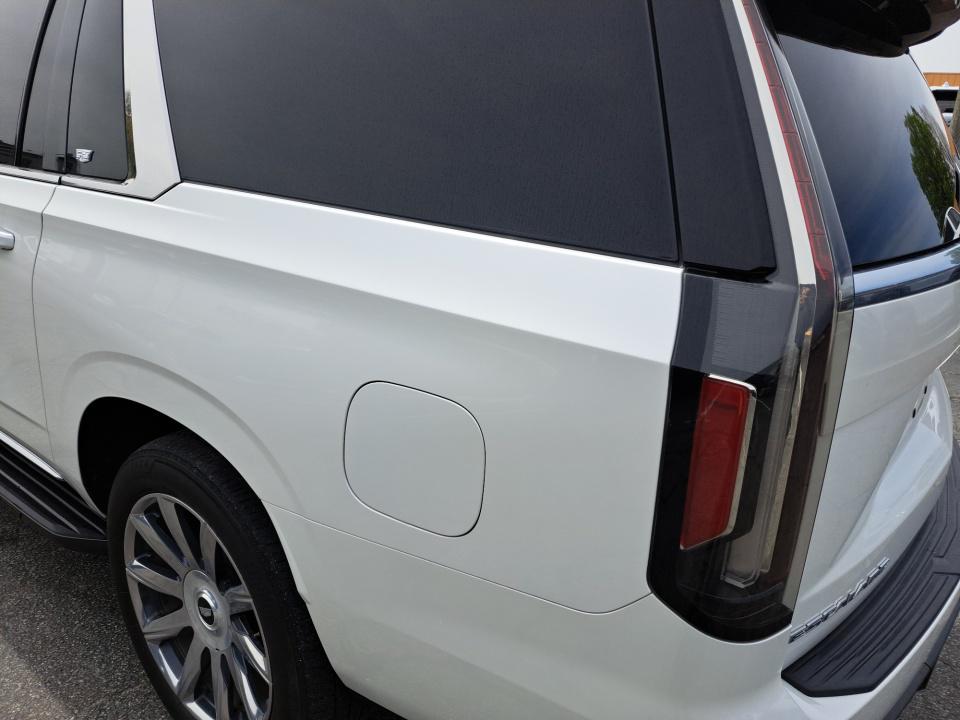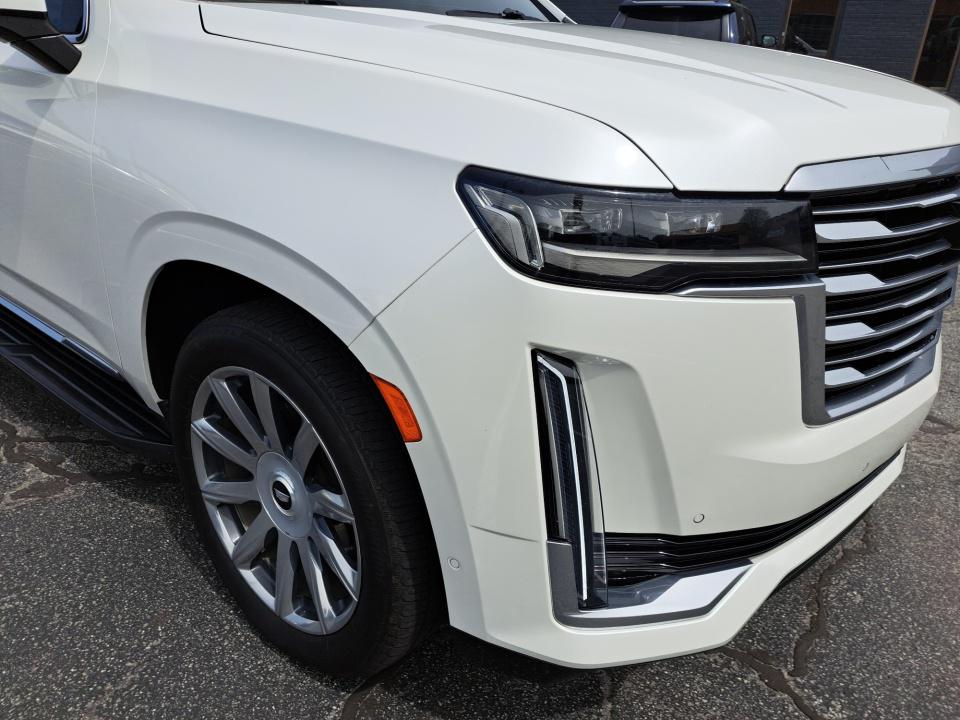 Beneath the stunning Crystal White Tricoat exterior lies a powerful 6.2L V8 engine paired with a smooth-shifting 10-Speed Automatic transmission and 4-Wheel Drive delivering a thrilling and confident driving experience. The Escalade ESV's impressive capabilities are further enhanced by its Air Ride Adaptive Suspension Soft Closing Doors and Illuminating Sill Plates ensuring a refined and comfortable ride.