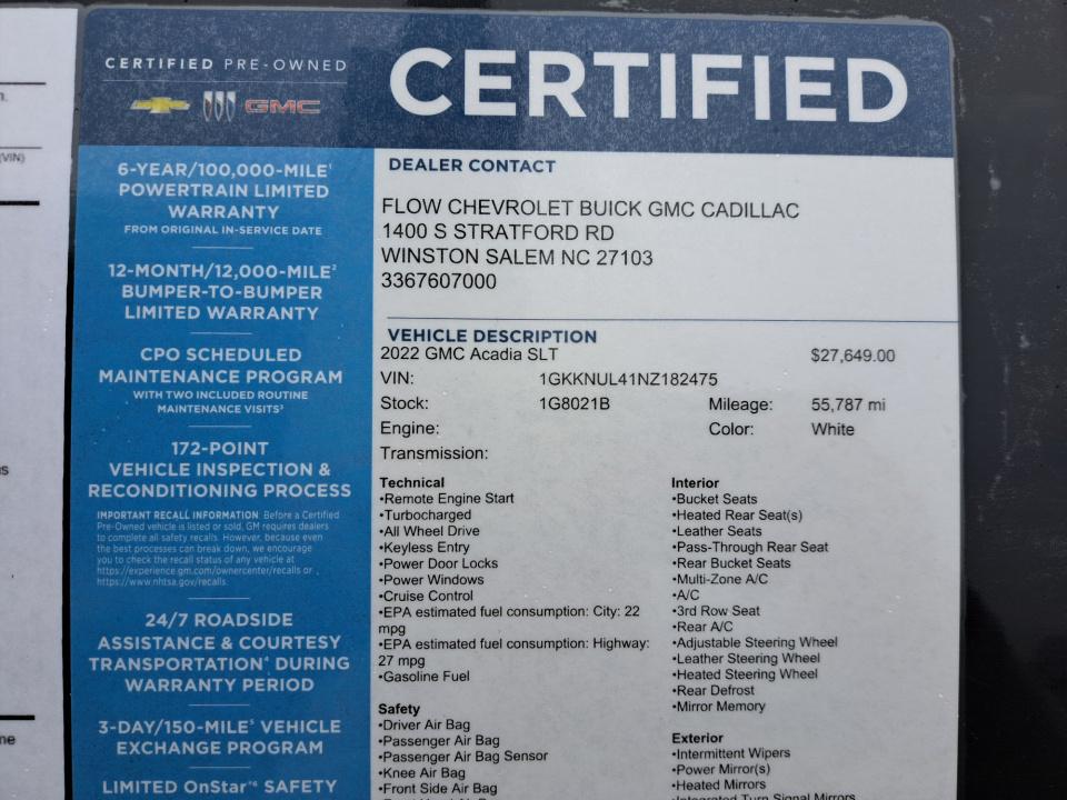 Certified. GMC Certified Pre-Owned Details: