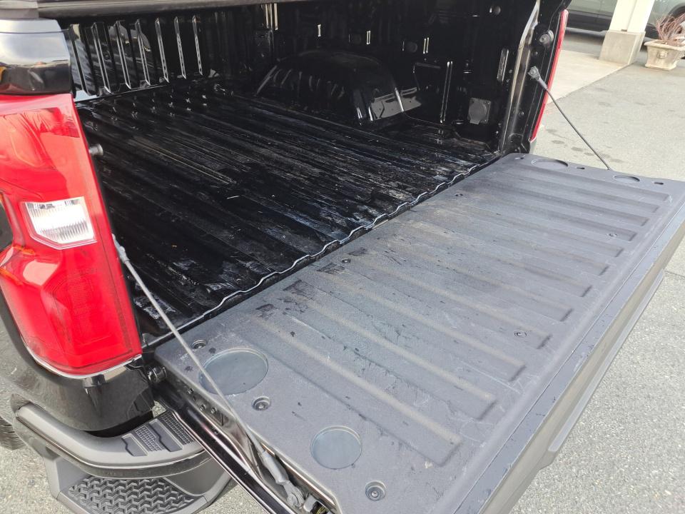 The exterior of this Silverado 1500 RST exudes a bold confident presence with its sleek black paint and striking 20-inch high-gloss black painted aluminum wheels. The front LED fog lamps and IntelliBeam automatic high beam headlights not only enhance the truck's style but also provide excellent visibility in any driving conditions.
