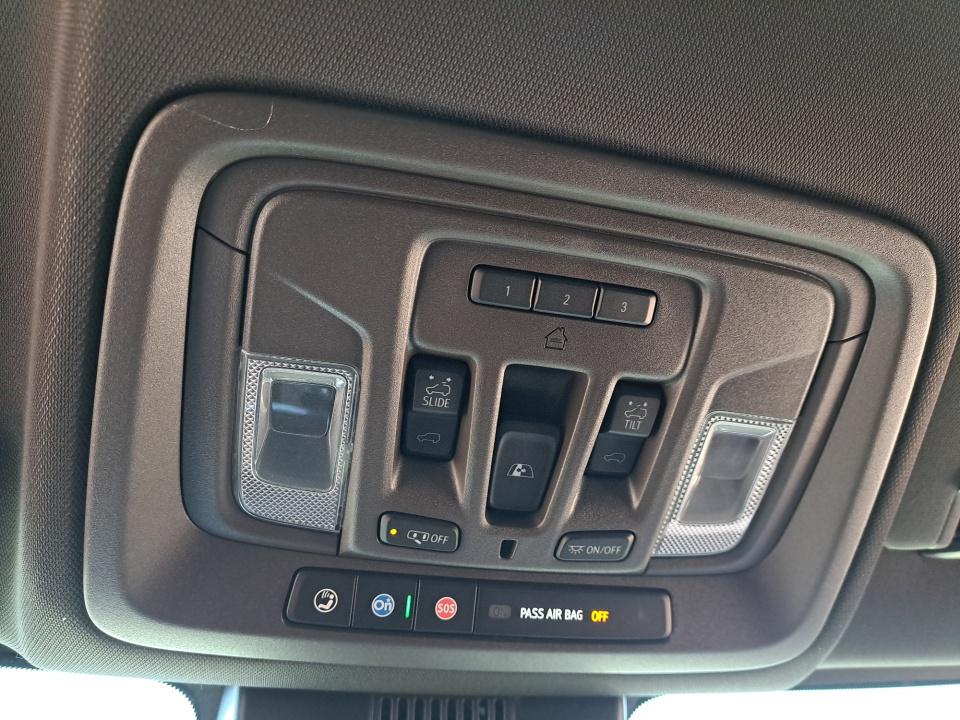 Denali Reserve Package Features This Denali includes upgrades like GMC MultiPro power retractable running boards 22" painted aluminum wheels with bright chrome inserts a power sunroof and the full Technology Package including a multicolor 15" head up display and auto dimming rearview mirror with camera display.