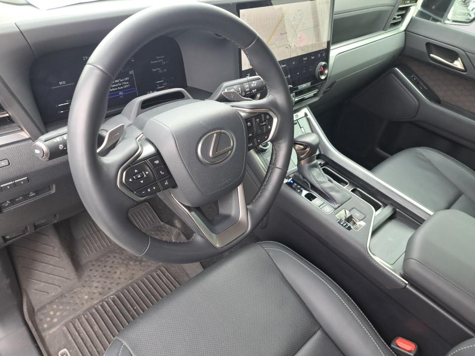 The Premium+ trim elevates the interior experience with NuLuxe leather-trimmed seating heated and ventilated front seats a power-adjustable steering column and a panoramic view monitor for enhanced confidence in any driving situation. The cabin features a large 14-inch Lexus touchscreen wireless Apple CarPlay and Android Auto a digital gauge cluster and wireless charging.